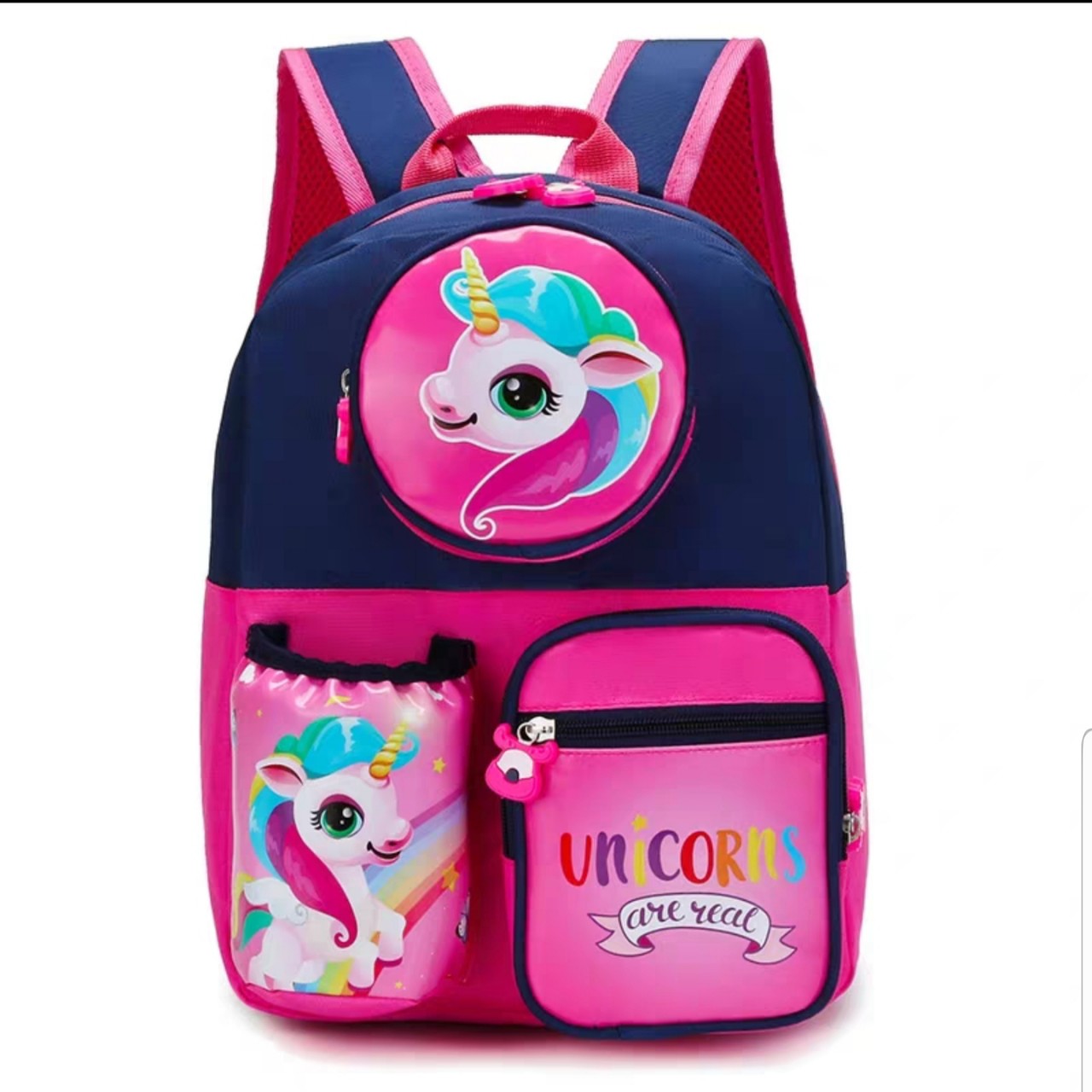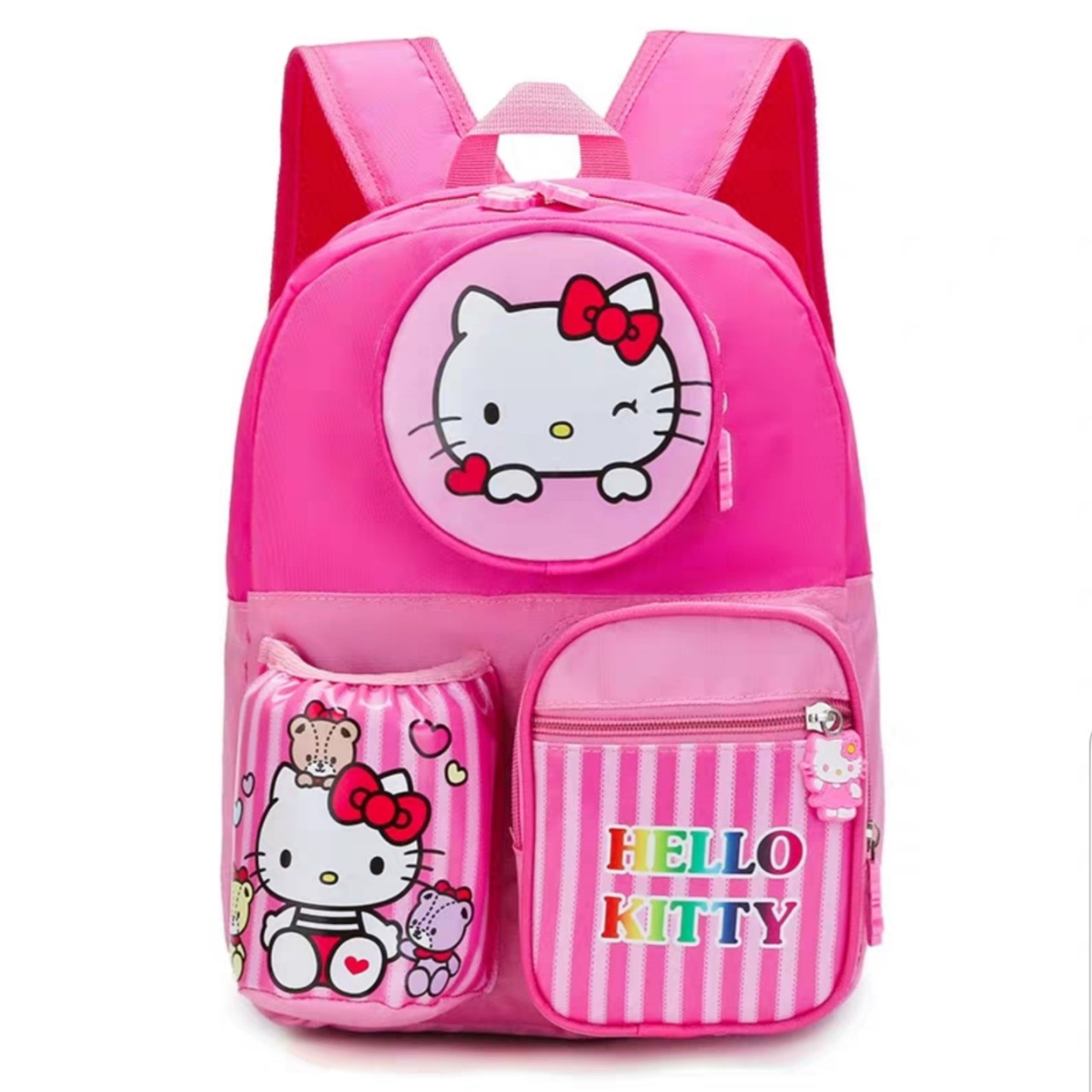 Vải dù gai siêu nhẹ, trượt nước khi đi mưa nhỏ, dây kéo siêu êm, phía sau lưng, quai đeo có lớp muốt chống nóng lưng cho bé