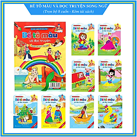 Sách – Bé tô màu và đọc truyện song ngữ Việt Anh (Bộ 8 quyển kèm 1 túi đựng).