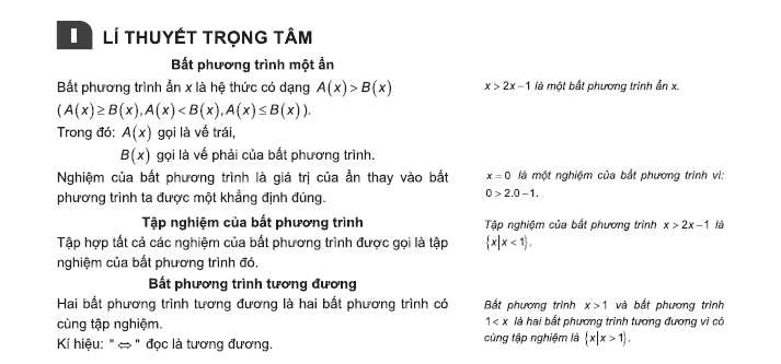 – I. Lý thuyết trọng tâm: Được trình bày thành 2 cột: Cột bên trái thâu tóm nội dung chính phần lý thuyết của bài học. Cột bên phải là ví dụ, hình ảnh minh họa; giải thích rõ hơn phần kiến thức ở cột bên trái; những kiến thức mở rộng, những kiến thức cũ liên quan cũng được thầy cô ghi chú chi tiết hoặc những câu hỏi gợi mở hứng thú cho học sinh… được trình bày tương ứng với phần lý thuyết bên trái.
