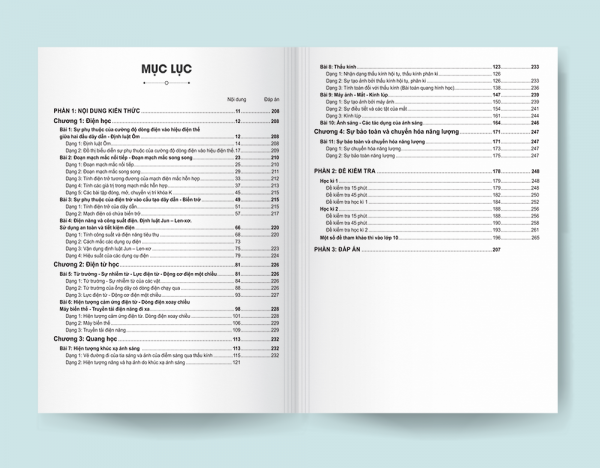 Toàn bộ hệ thống kiến thức Vật lí lớp 9 được thâu tóm đầy đủ và được chia thành 4 chương: