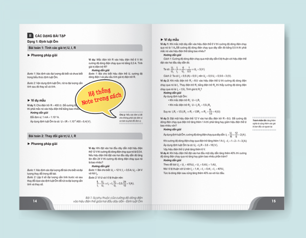 + Hệ thống ghi chú đi kèm ví dụ mẫu chia sẻ kinh nghiệm, chú ý, mẹo, nhắc lại kiến thức hay phương pháp giải nhanh giúp các em đọc hiểu một cách dễ dàng.