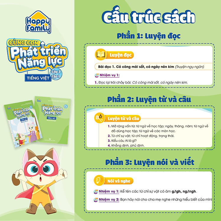 Happy family Cùng con phát triển năng lực Tiếng Việt lớp 2 tập 1 là bộ sách tham khảo được xây dựng bám sát từng đơn vị bài học trong SGK Tiếng Việt lớp 2. Bộ sách gồm sách dành cho phụ huynh và sách dành cho học sinh song song với nhau, giúp bố mẹ dễ dàng dạy con học ngay tại nhà.