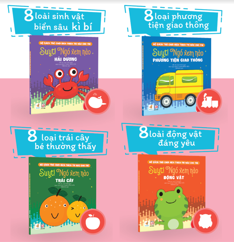 Với thiết kế nhỏ gọn, vừa tay và màu sắc bắt mắt, bộ 4 cuốn Suỵt! Ngó xem nào sẽ là bộ sưu tập thú vị trong tủ sách của các bé!