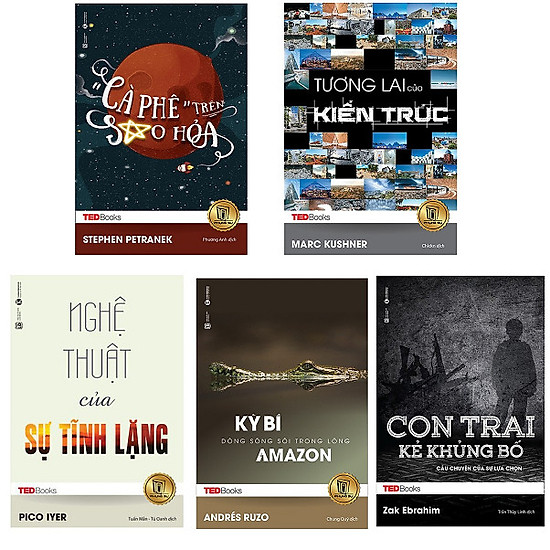 Bộ 5 cuốn TedBooks nên đọc: Cà Phê Trên Sao Hỏa – Tương Lai Của Kiến Trúc – Nghệ Thuật Của Sự Tĩnh Lặng – Kỳ Bí Dòng Sông Sôi Trong Lòng Amazon – Con Trai Kẻ Khủng Bố