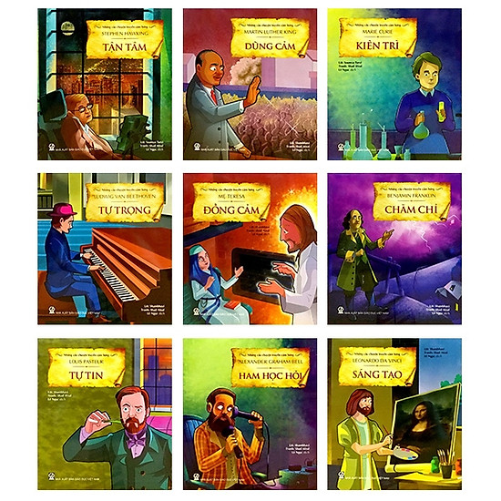 Mỗi danh nhân đại diện cho một phẩm tính tốt đẹp mà bất cứ cha mẹ nào cũng mong muốn con mình có được: Ham học hỏi, kiên trì, sáng tạo, quyết tâm, đồng cảm, tận tâm, dũng cảm, tự trọng, chăm chỉ, tự tin.