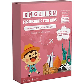 – Với hình ảnh đẹp, bắt mắt cùng phiên âm chuẩn Cambridge, bộ thẻ học flashcards tiếng Anh cho trẻ em từ 6 – 10 tuổi của Wabooks với 7 chủ đề sẽ cung cấp cho các bé vốn từ vựng lên đến 210 trải đều trên các lĩnh vực lý thú với các bé. Trong đó, bộ flashcards chủ đề Vòng quanh thế giới mang đến cho trẻ bộ 30 từ vựng về các đất nước trên thế giới, những đất nước với những địa danh nổi tiếng và đặc biệt, được coi như biểu tượng của đất nước hay vùng đất đó.