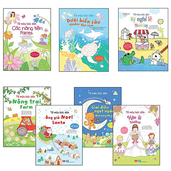 Bộ sách gồm các cuốn: Tô màu bóc dán – Các nàng tiên – Fairies Tô màu bóc dán – Dưới biển sâu – Under the sea Tô màu…