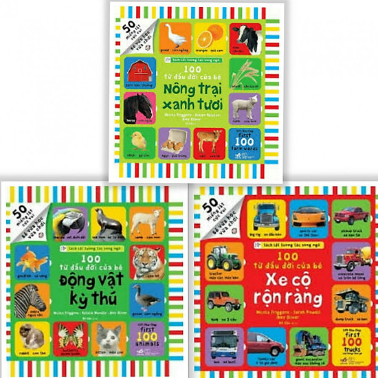 Combo 3 cuốn 100 Từ Đầu Đời Của Bé: Xe Cộ Rộn Ràng + Động Vật Kỳ Thú + Nông Trại Xanh Tươ