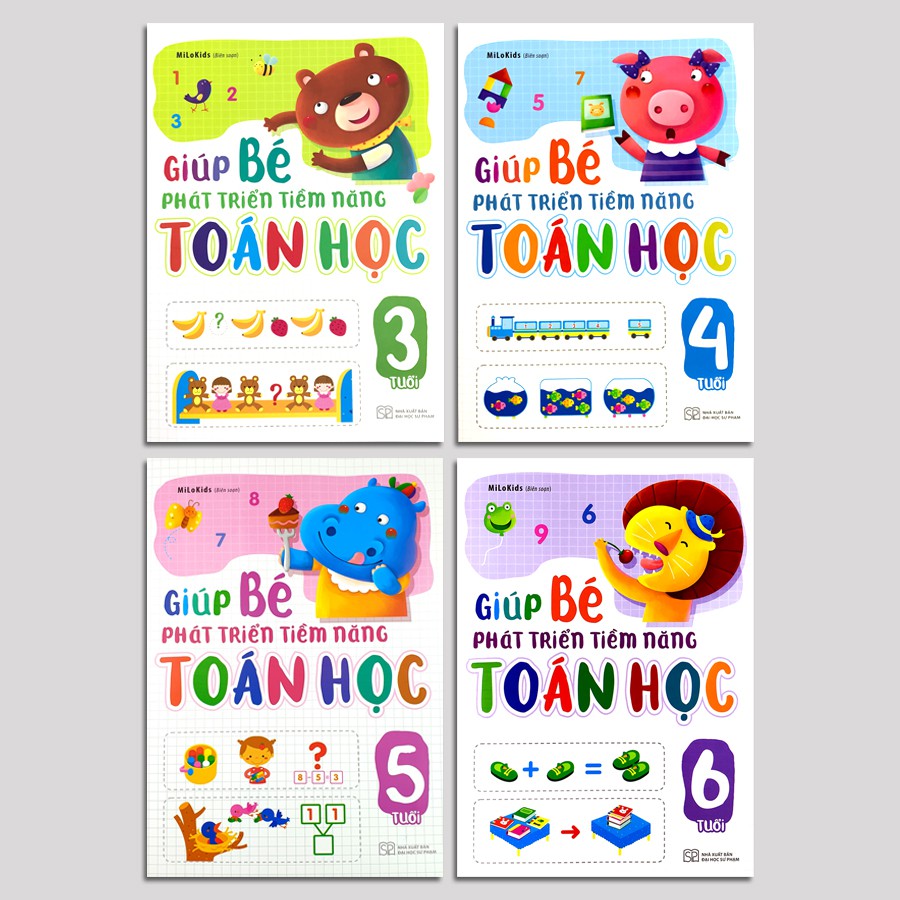 Combo 4 Cuốn Sách Giúp Bé Phát Triển Tiềm Năng Toán Học Cho Trẻ Từ 3-6 TuổiGiúp Bé Phát Triển Tiềm Năng Toán Học gồm 4 độ tuổi, tương ứng 4 quyển:- Giúp Bé Phát Triển Tiềm Năng Toán Học 3 Tuổi- Giú