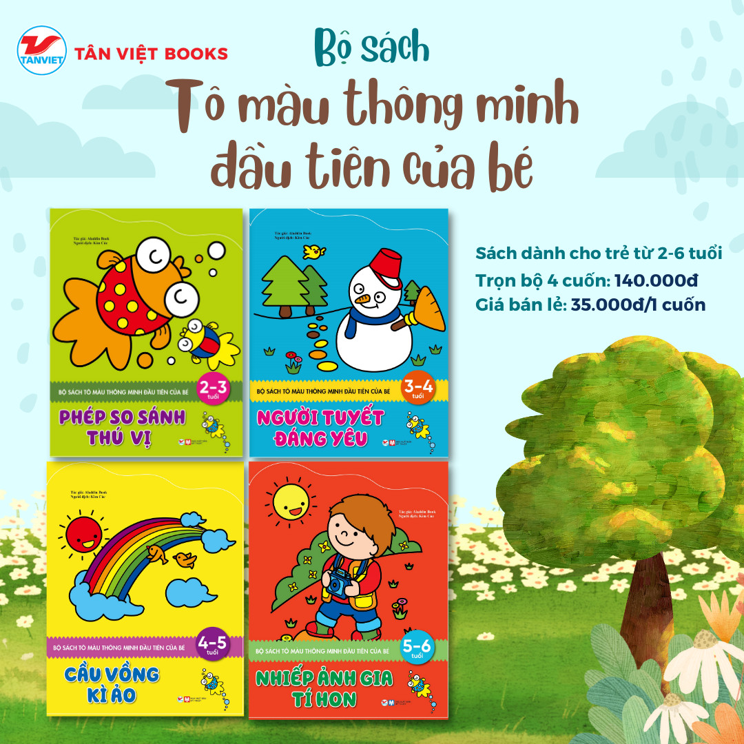 Bộ sách gồm 4 cuốn: Phép so sánh thú vị (2 – 3 tuổi), Người tuyết đáng yêu (3 – 4 tuổi), Cầu vồng kì ảo (4 – 5 tuổi) và Nhiếp ảnh gia tí hon (5 – 6 tuổi).