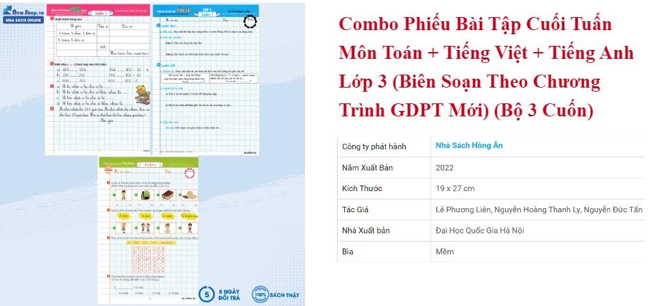 Combo Phiếu Bài Tập Cuối Tuấn Môn Toán + Tiếng Việt + Tiếng Anh Lớp 3 (Biên Soạn Theo CT GDPT Mới) (Bộ 3 Cuốn) – (HA)