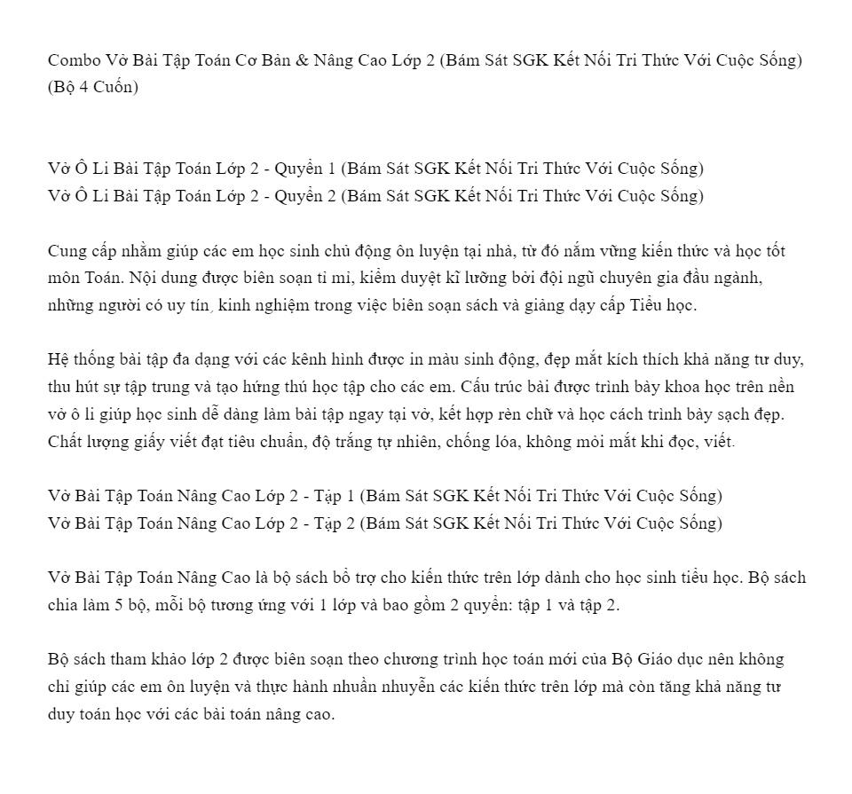 Đánh giá sách Combo Vở Bài Tập Toán Cơ Bản & Nâng Cao Lớp 2 (Bám Sát SGK Kết Nối Tri Thức Với Cuộc Sống) (Bộ 4 Cuốn)- (HA) – Newshop, dowload sách Combo Vở Bài Tập Toán Cơ Bản & Nâng Cao Lớp 2 (Bám Sát SGK Kết Nối Tri Thức Với Cuộc Sống) (Bộ 4 Cuốn)- (HA) – Newshop, Đọc sách Combo Vở Bài Tập Toán Cơ Bản & Nâng Cao Lớp 2 (Bám Sát SGK Kết Nối Tri Thức Với Cuộc Sống) (Bộ 4 Cuốn)- (HA) – Newshop online, Download Ebook Combo Vở Bài Tập Toán Cơ Bản & Nâng Cao Lớp 2 (Bám Sát SGK Kết Nối Tri Thức Với Cuộc Sống) (Bộ 4 Cuốn)- (HA) – Newshop free, Combo Vở Bài Tập Toán Cơ Bản & Nâng Cao Lớp 2 (Bám Sát SGK Kết Nối Tri Thức Với Cuộc Sống) (Bộ 4 Cuốn)- (HA) – Newshop pdf doc prc, Xem sách Combo Vở Bài Tập Toán Cơ Bản & Nâng Cao Lớp 2 (Bám Sát SGK Kết Nối Tri Thức Với Cuộc Sống) (Bộ 4 Cuốn)- (HA) – Newshop online,Tải sách Combo Vở Bài Tập Toán Cơ Bản & Nâng Cao Lớp 2 (Bám Sát SGK Kết Nối Tri Thức Với Cuộc Sống) (Bộ 4 Cuốn)- (HA) – Newshop, review sách Combo Vở Bài Tập Toán Cơ Bản & Nâng Cao Lớp 2 (Bám Sát SGK Kết Nối Tri Thức Với Cuộc Sống) (Bộ 4 Cuốn)- (HA) – Newshop