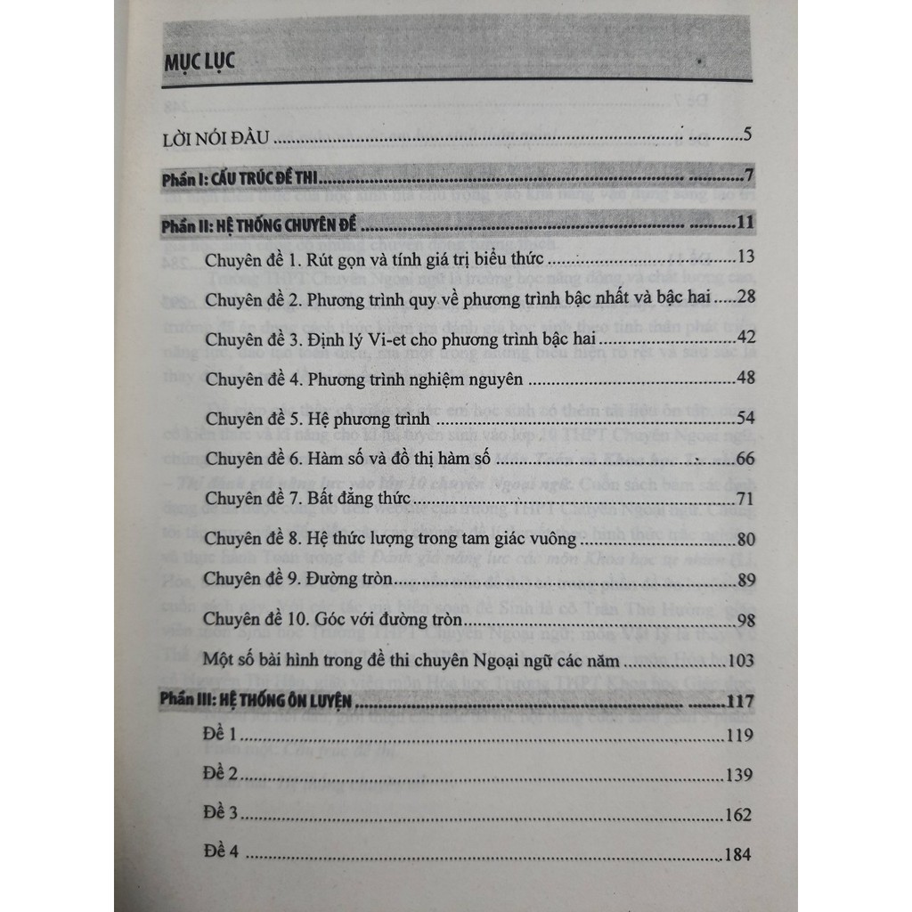 Phần 2 : Hệ thống chuyên đề (phần này cung cấp 10 chuyên đề theo cấu trúc đề thi tuyển sinh vào lớp 10 THPT Chuyên Ngoại Ngữ. Nội dung các chuyên đề thi phân môn Toán nằm trong chương trình toán THCS chủ yếu lớp 9 )