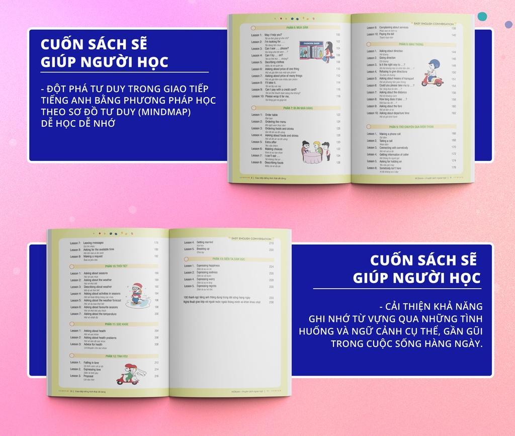 Sách – Easy English Conversation – Giao tiếp tiếng Anh thật dễ dàng là cuốn sách học tiếng Anh giao tiếp bằng sơ đồ tư duy giúp bạn đọc Giao tiếp tiếng Anh thật dễ dàng, cải thiện…