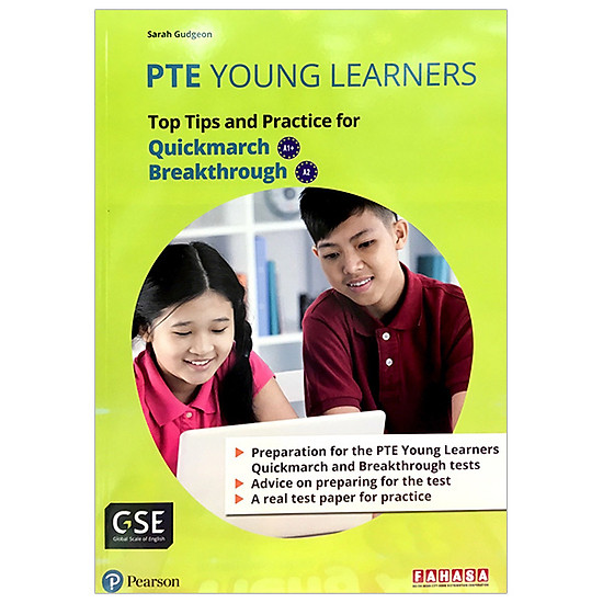 PTE Young Learners Top Tips and Practice for Quickmarch & Breakthrough: sách luyện thi dành cho 2 trình độ cao hơn là Quickmarch (tương đương A1+), Breakthrough (tương đương A2)