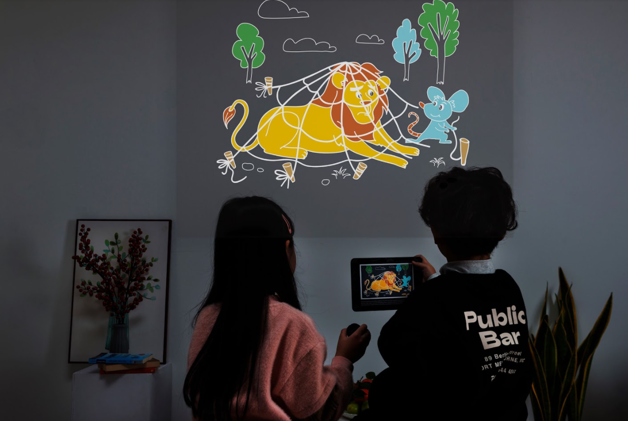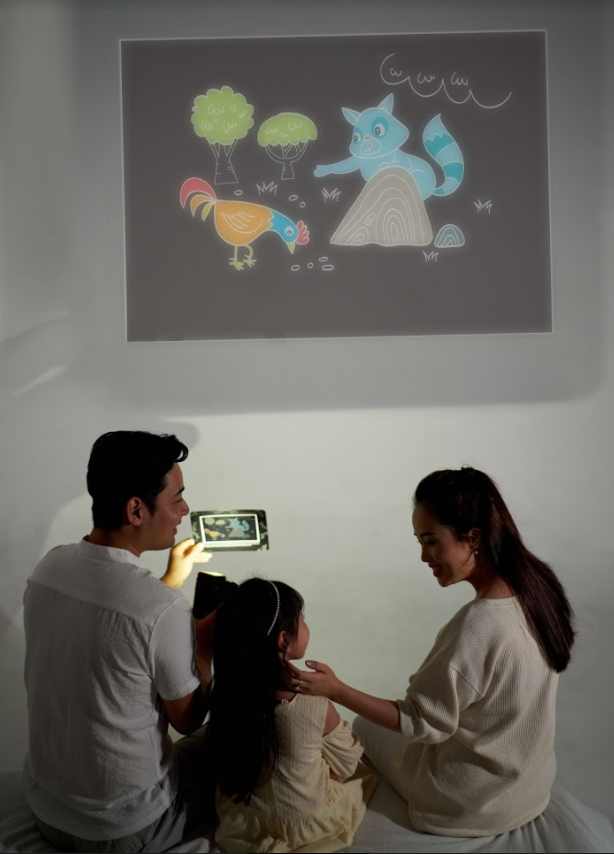 Những trang sách được thiết kế đặc biệt với khuôn giấy mika trong suốt và màu nền đen, khi có ánh sáng đèn pin/đèn flash chiếu qua, các hình ảnh sẽ được phóng đại lên trên vật phản chiếu (tường nhà, trần nhà, cánh cửa,…) tạo nên những hình ảnh sống động đầy màu sắc như những thước phim.