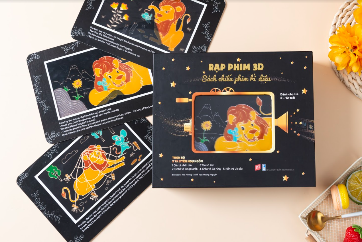 Rạp phim 3D – Sách chiếu phim kì diệu” là bộ sách tương tác kích thích sự phát triển của trẻ qua việc đọc sách bằng đa giác quan. Với hình thức chiếu bóng độc đáo, bộ sách là sự kết hợp giữa truyền thống và hiện đại, mang đến cho trẻ những trải nghiệm đọc sách mới lạ, bổ ích