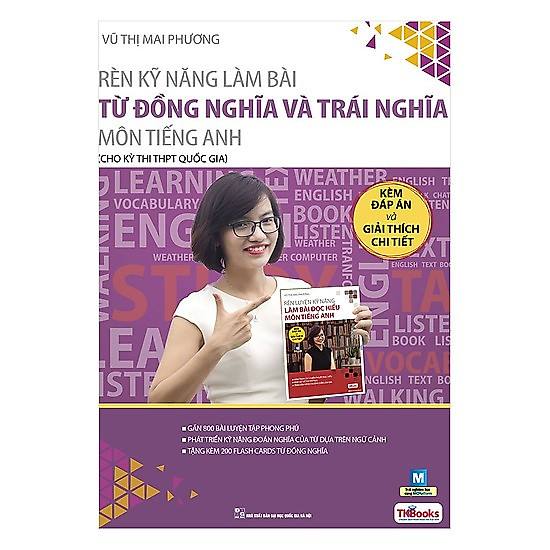 Nhằm giúp các em chuẩn bị kiến thức tốt nhất cho kỳ thi THPT Quốc Gia, cô Mai Phương biên soạn sách “Rèn kỹ năng làm bài từ đồng nghĩa và trái nghĩa môn Tiếng Anh”. Đây là một trong những dạng bài “kinh điển” đã xuất hiện rất nhiều trong đề thi THPTQG các năm vừa qua. So với các dạng bài khác trong đề thi, dạng bài “từ đồng nghĩa, trái nghĩa” được đánh giá là một dạng bài khó. Phần thi này đòi hỏi học sinh phải có vốn từ vựng phong phú. Tuy nhiên, thật khó để có thể nhớ hết tất cả các từ vựng trong tiếng Anh, vì thế dạng bài này còn đòi hỏi chúng ta phải có kỹ năng loại trừ và các kỹ năng làm bài khác.