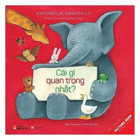 Cái Gì Quan Trọng NhấtNULL Từ 0-6 tuổi, chắc chắn các bé đã biết được rất nhiều loài động vật cùng với những đặc điểm nổi bật của chúng. Nhưng có bao giờ các bé thắc mắc vì sao hươu cao cổ có cổ thật dài? Vì sao voi lại có vòi thật lớn? Vì sao nhím có gai? Vì sao chim có cánh?… và vô số câu hỏi khác về các loài động vật. Và trong số những đặc điểm đó, bé nghĩ đặc điểm nào là quan trọng nhất? Nếu tất cả các loài động vật có tai dài như thỏ, có cánh như chim hay có gai như nhím thì trông sẽ thế nào nhỉ? Sẽ ra sao nếu chim có vòi giống như voi, voi có gai giống như nhím, và nhím có da xanh như ếch? Vậy ba mẹ và các bé hãy tham gia buổi tranh luận cùng các loài động vật ở rừng Thảo Nguyên Đỏ trong Cái gì quan trọng nhất để có câu trả lời. Cái gì quan trọng nhất (tên được dịch từ tiếng Anh – What is the most important thing?) là một cuốn sách song ngữ với ngôn từ phong phú về các loài động vật, sau khi đọc xong câu chuyện này, các bé có thể nhìn vào những bức tranh minh họa đẹp mắt, sinh động, gần gũi và vô cùng sáng tạo về các loài động vật để kể lại câu chuyện bằng tiếng Anh. Cái gì quan trọng nhất được đánh giá là một cuốn sách hay về nội dung, đẹp về hình thức, mang lại nhiều kiến thức phong phú về các loài động vật cho trẻ từ 0-6, và đặc biệt giúp trẻ học tiếng Anh qua câu chuyện đơn giản và nhân văn, tác phẩm đoạt giải Danh dự Vì sự chung sống hòa bình do UNESCO trao tặng năm 2001. Tác giả Antonella Abbatiello sinh năm 1959, đã minh họa cho gần 90 tác phẩm thiếu nhi và hầu hết trong số đó do bà sáng tác, sách của bà đã được dịch và xuất bản ở 19 quốc gia, bà cũng từng cộng tác thực hiện phim hoạt hình trong 8 năm với họa sĩ Emanuele Luzzati và đạo diễn Giulio Gianini. Bà là người phụ trách đồ họa cho ba bộ phim hoạt hình của Leo Lionni là “Cornelius”, “It’s mine!” và “Fish is fish”