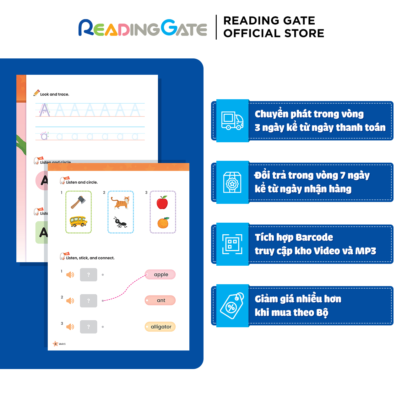 – Mỗi Workbook đi kèm các trang Sticker để trẻ em có thể dán vào các chỗ chừa trống trong phần bài tập.