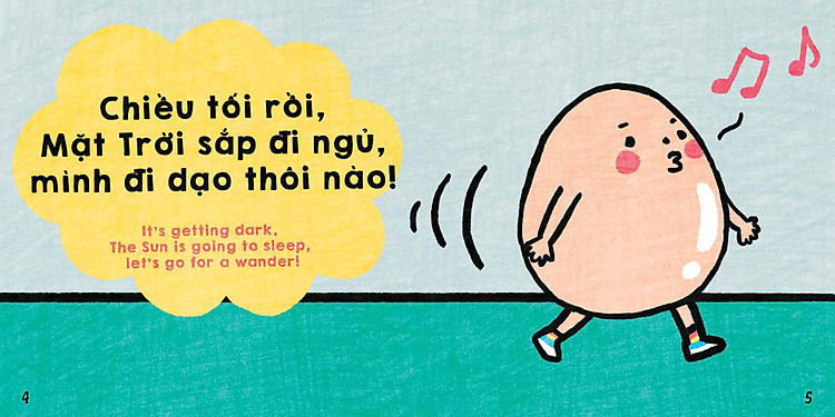 Với cuốn sách song ngữ vô cùng ngộ nghĩnh, vui nhộn “Sách ehon Bé trứng tròn xoe – Trứng Ốp la” của Tủ sách Gia đình nhỏ, bố mẹ hãy cùng con trải nghiệm đọc sách trong không gian phòng bếp! Bố mẹ hãy thử tưởng tượng, mình vừa làm món cơm rang trứng, vừa đọc thật to: nào thái thái thái, băm băm băm, trộn đều lên nào, trộn thật đều lên nào/ Mix them up! Mix them well!,̀ thế là, nấu một món ăn như chơi một trò chơi, thật nhẹ nhàng, sảng khoái, đồng thời bố mẹ cùng bé có thể tưởng tượng cho chính mình những câu chuyện về các món ăn khác. Em bé của bố mẹ sẽ không chỉ khỏe mạnh, cao lớn mà còn là một em bé giàu cảm xúc và tư duy nhanh nhạy.