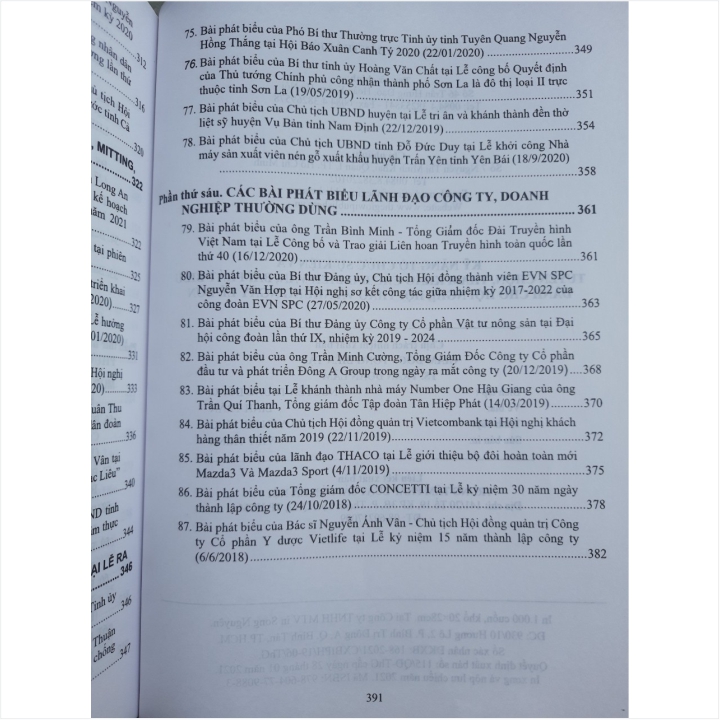 Phần Thứ Sáu. Các Bài Phát Biểu Lãnh Đạo Công Ty, Doanh Nghiệp Thường Dùng