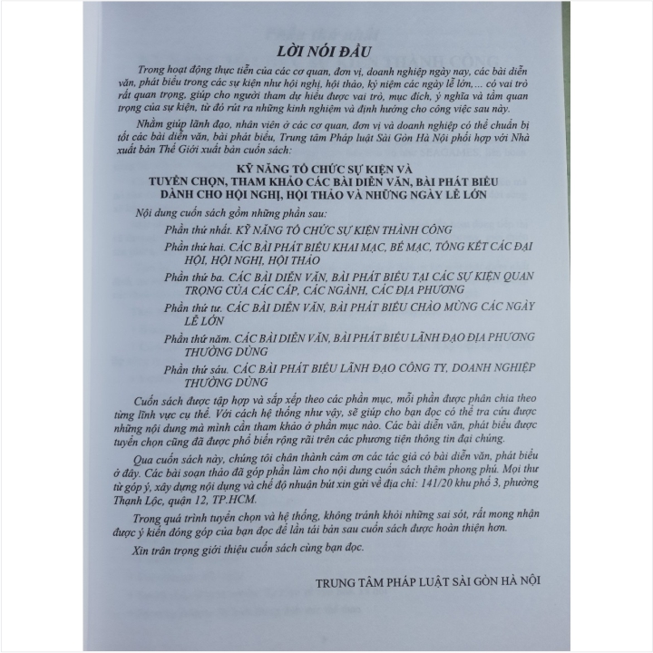 Nhà sách Nam Việt – Namvietbook xin trân trọng giới thiệu sách Kỹ Năng Tổ Chức Sự Kiện và Tuyển Chọn Tham Khảo Các Bài Diễn Văn, Bài Phát Biểu Dành Cho Hội Nghị, Hội Thảo và Những Ngày Lễ Lớn