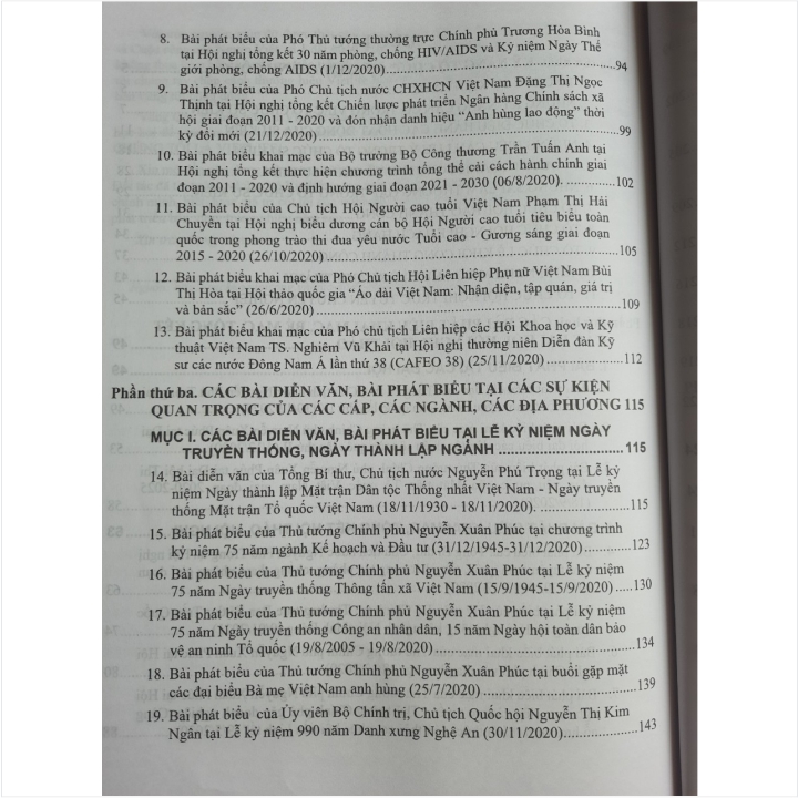 Phần Thứ Hai. Các Bài Phát Biểu Khai Mạc, Bế Mạc, Tổng Kết Các Đại Hội, Hội Nghị, Hội Thảo