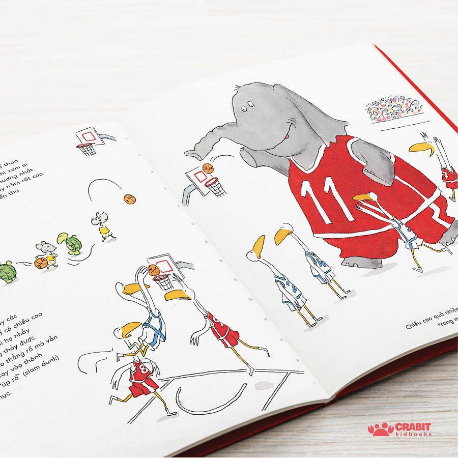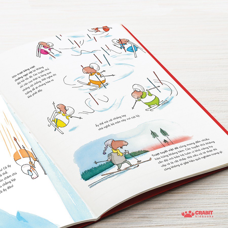 Dù cung cấp lượng thông tin về thể thao nhiều nhưng cuốn sách được thiết kế khéo léo để không làm em cảm thấy chán ngán. Trước hết là nhờ giọng văn đầy pha trò và hình vẽ ngộ nghĩnh của chú Ole Könnecke, em hẳn sẽ phải bật cười nhiều lần khi khám phá câu chuyện thể thao thú vị này. Hơn nữa, chú Ole còn chủ đích tạo nhiều khoảng trống trên trang sách giữa các môn thể thao, giúp quá trình đọc của em dễ dàng và thư thái hơn. Vì như vậy, em sẽ có nhiều cơ hội để tạm nghỉ, để ngắm tranh và để so sánh, đối chiếu các môn thể thao với nhau.