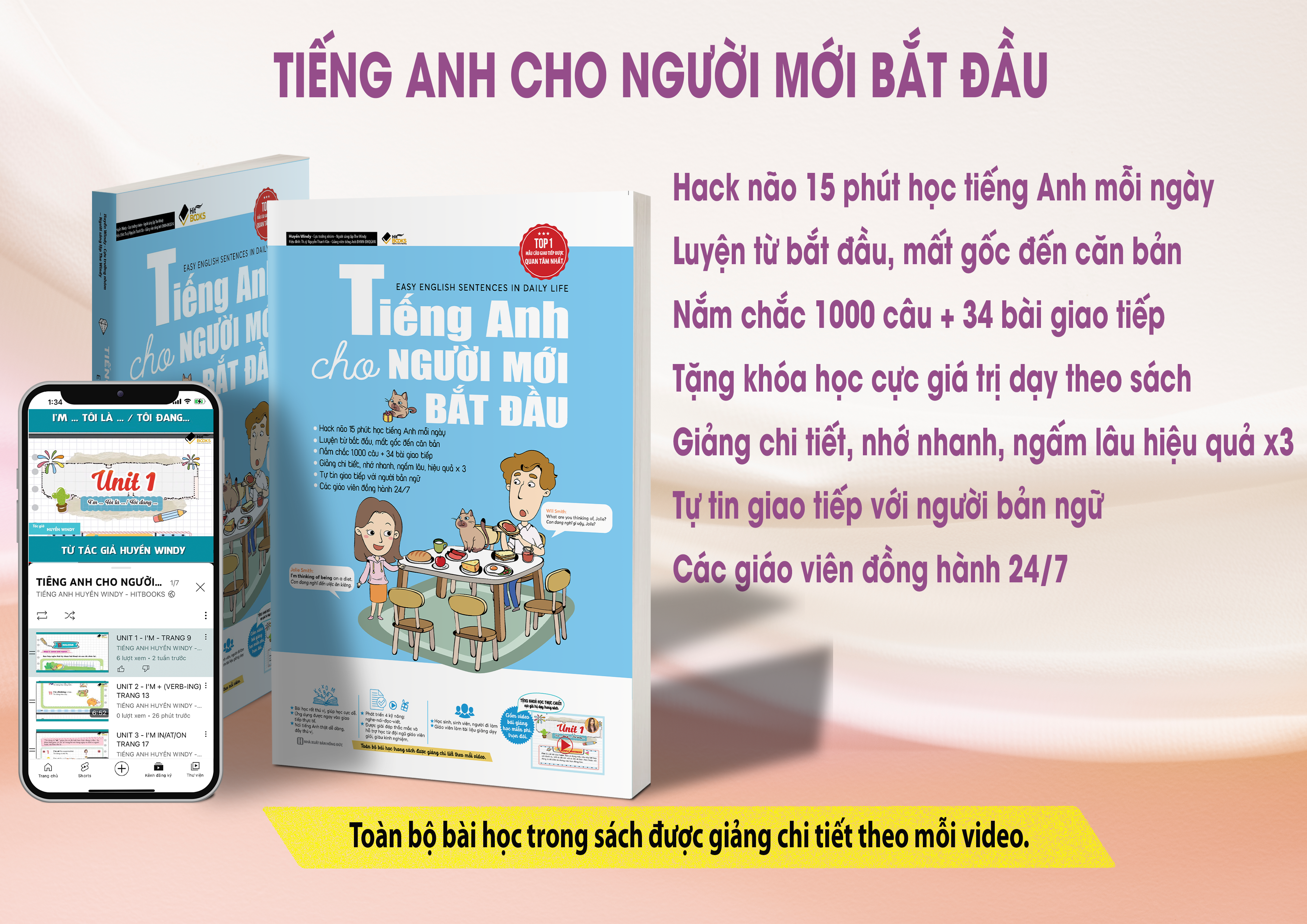 Cuốn sách “Tự học tiếng Anh dành cho người mới bắt đầu” của nhóm tác giả Huyền Windy do công ty cổ phần sách Windy – chuyên sách ngoại ngữ – phát hành là một tựa sách dành riêng cho bạn. Với hơn 300 trang được biên tập một cách kỹ lưỡng, là những bài học trực quan và xuyên suốt giúp bạn nắm bắt được tình huống cụ thể, cũng như những mẫu câu đàm thoại có tính ứng dụng cao để người học có thể tự tin sử dụng tiếng Anh giao tiếp kể cả với người bản địa.