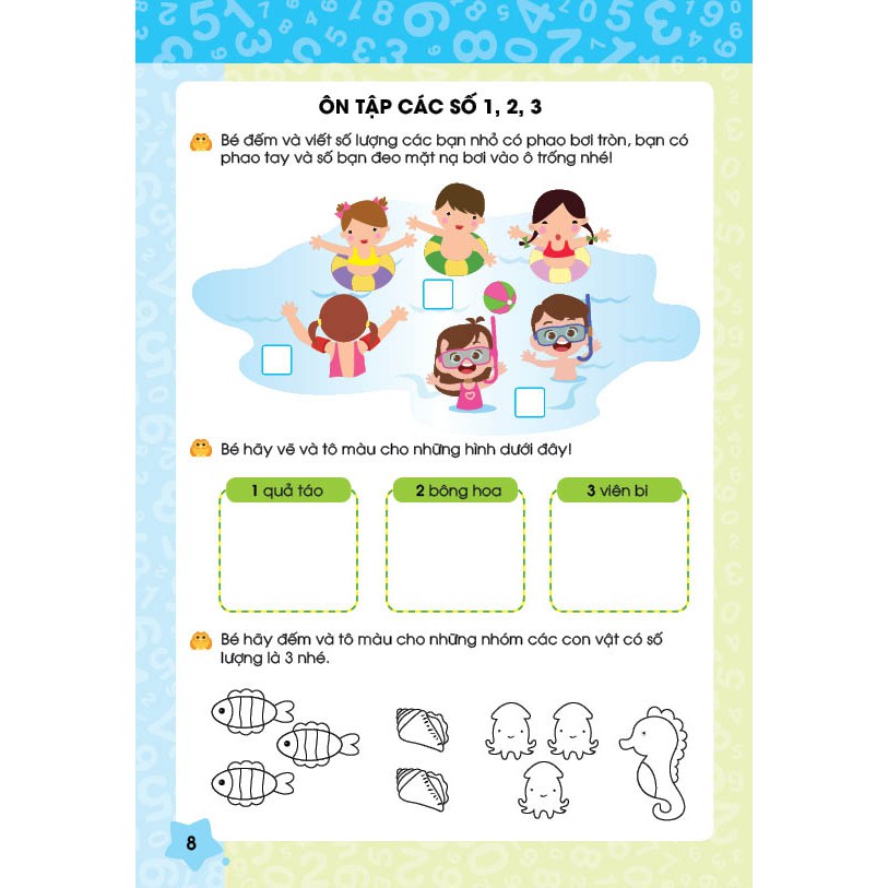 ❖ Thiết kế sách đề cao sự tương tác, hình ảnh trực quan và các bài tập sinh động. Nhờ đó, giúp bé sáng tạo thực sự, kích thích khả năng tư duy toán học của con trẻ một cách tự nhiên và thoải mái.