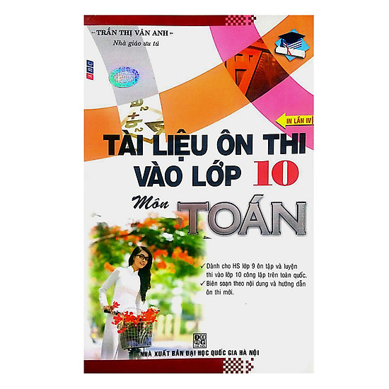 Cuốn sách Tài Liệu Ôn Thi Vào Lớp 10 Môn Toán là tài liệu tham khảo, học tập môn Toán do nhà giáo ưu tú Trần Thị Vân Anh biên soạn dành cho các bạn học sinh lớp 9 nhằm ôn tập, hệ thống củng cố kiến thức Toán 9 cũng như luyện đề, bài tập nhằm có các cách giải toán được nhanh nhất, thông minh nhất, giúp các bạn ôn thi môn Toán vào lớp 10 được hiệu quả cao.